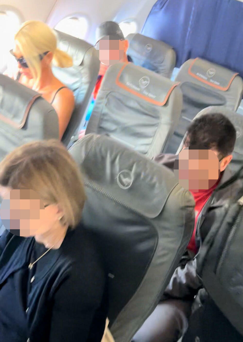 - Dok je sedela, JK je u jednom trenutku podigla pogled u pravcu Cece, koja je tada ulazila u avion, te je, dok je prolazila i tražila svoje mesto, samo kratko prokomentarisala: "Da li je moguće da je i ova nesrećnica tu? Ova žena me progoni." To je izazvalo smeh prisutnih putnika u biznis-klasi. Ceca je ceo let provela razgovarajući sa momkom iz svog benda, dok je Karleuša sve vreme gledala u telefon. Nakon sletanja u Minhen, Jelena je među prvima izašla iz aviona i sela kako bi sačekala igračicu i organizatora nastupa za to veče, koju su sedeli na kraju ekonomske klase na istom letu, a nekoliko trenutaka posle nje, stigla je i Ceca i samo prošla pored nje. Kada su se svi skupili, JK se uputila ka pasoškoj kontroli, a zatim i da preuzme prtljag, gde je Ražnatovićeva već sedela i razgovarala sa svojim saputnicima.