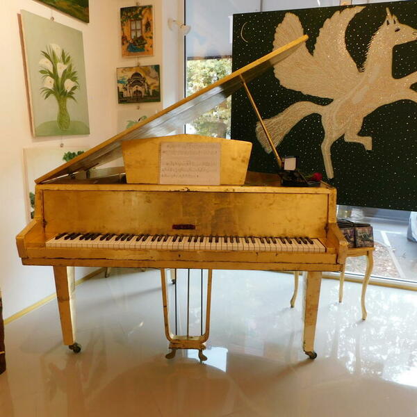 U ateljeu, koji je pod istim krovom, Sabina je izložila svoje umetničke slike i skulpture, a u jednom uglo se nalazi i koncertni klavir zlatne boje.