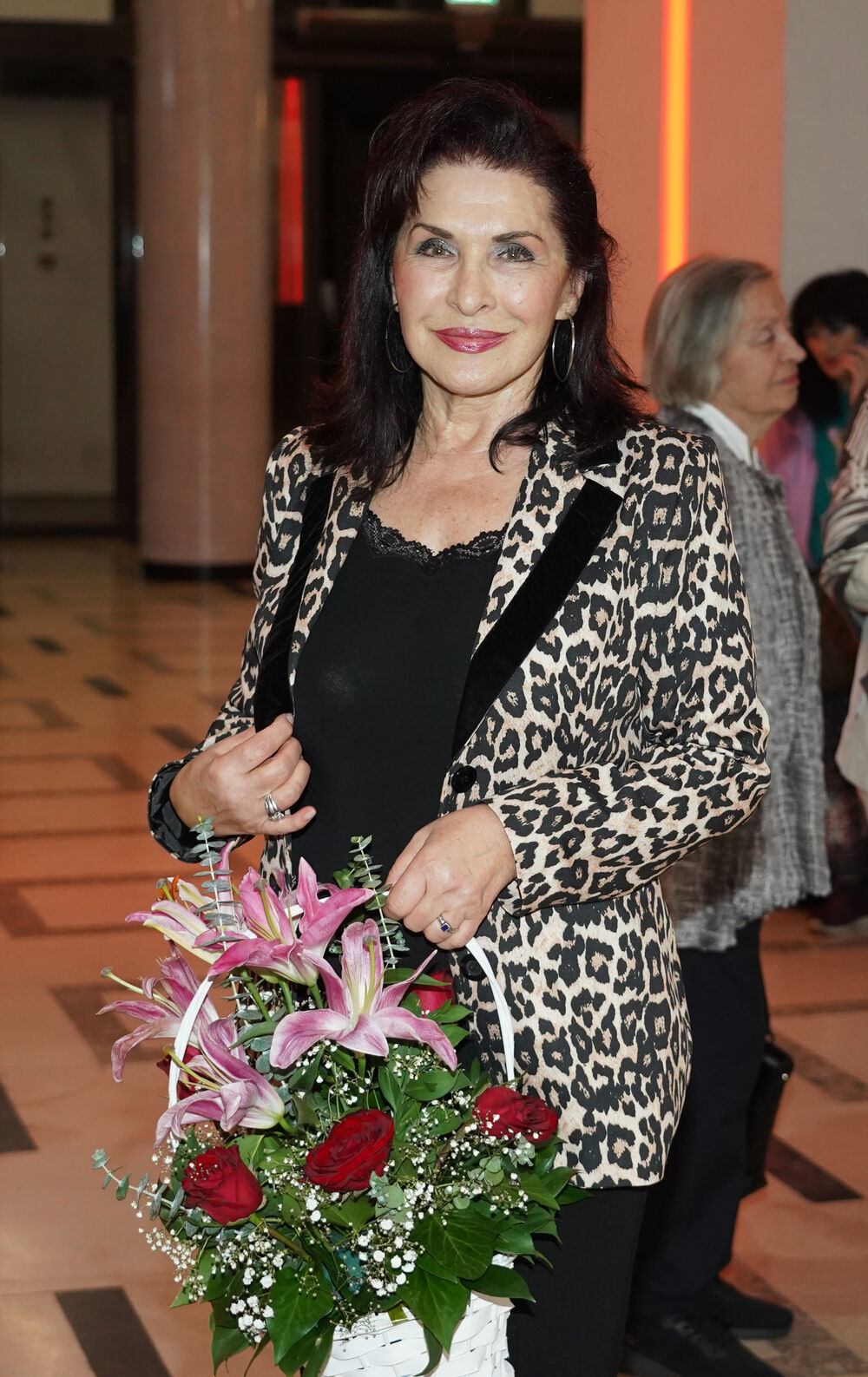 Pevačica je donela i poklon kraljici narodne muzike, buket cveća, a osmeh nije skidala sa lica tokom čitave večeri.