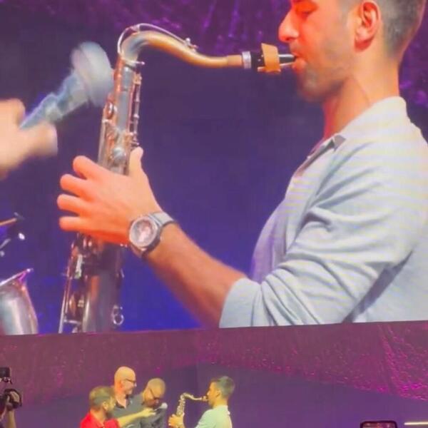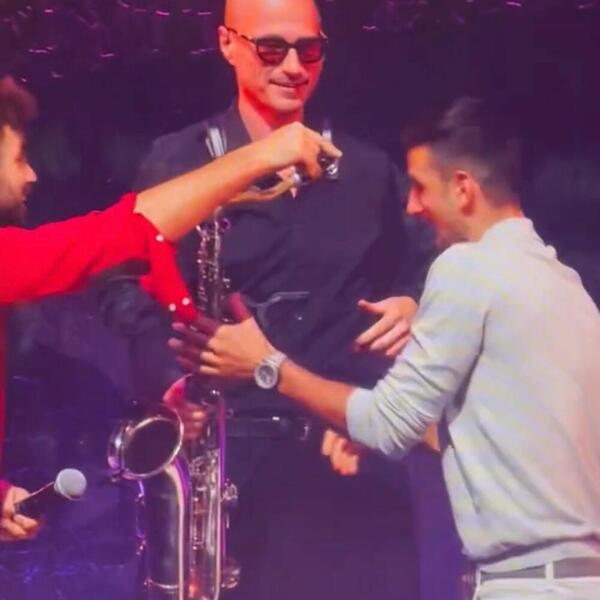 Posebnu pažnju je izazvao kada se dohvatio saksofona i zasvirao, a slavnog tenisera očigledno je povukla vesela atmosfera sa koncerta.