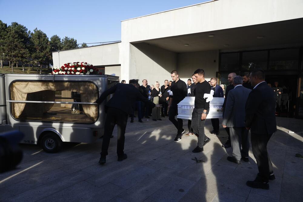 Beli krst i slika pokojnika izazvala je plač svih. Velika suza od crvenih i belih ruža stavljena je na pogrebna kola. Sliku pokojnog Aleksandra nosi uplakana i neutešna sestra.