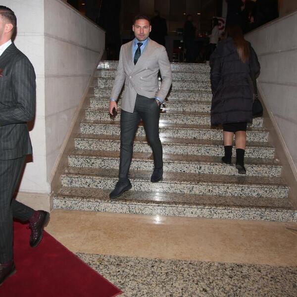 Duško je za ovaj događaj izabrao svetlo sivi sako, tamno sive pantalone i cipele u istoj boji, plavu košulju i kravatu. Nakon što je revija završena Tošić jeu pratnji svog druga izašao iz hotela, odakle su krenuli prema parkingu.