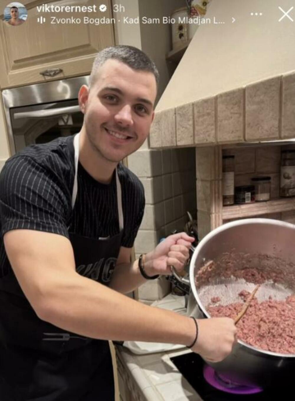 Sin Lepe Brene i ove godine je pokazao da je glavni majstor za sarme, čime se pohvalio na pomenutoj mreži. Viktor se uslikao sa punom šerpom mlevenog mesa, a potom je snimio žene koje spremaju slavsku trpezu, a na kraju i finalni rezultat - ogromna šerpa puna uvijenih sarmi.