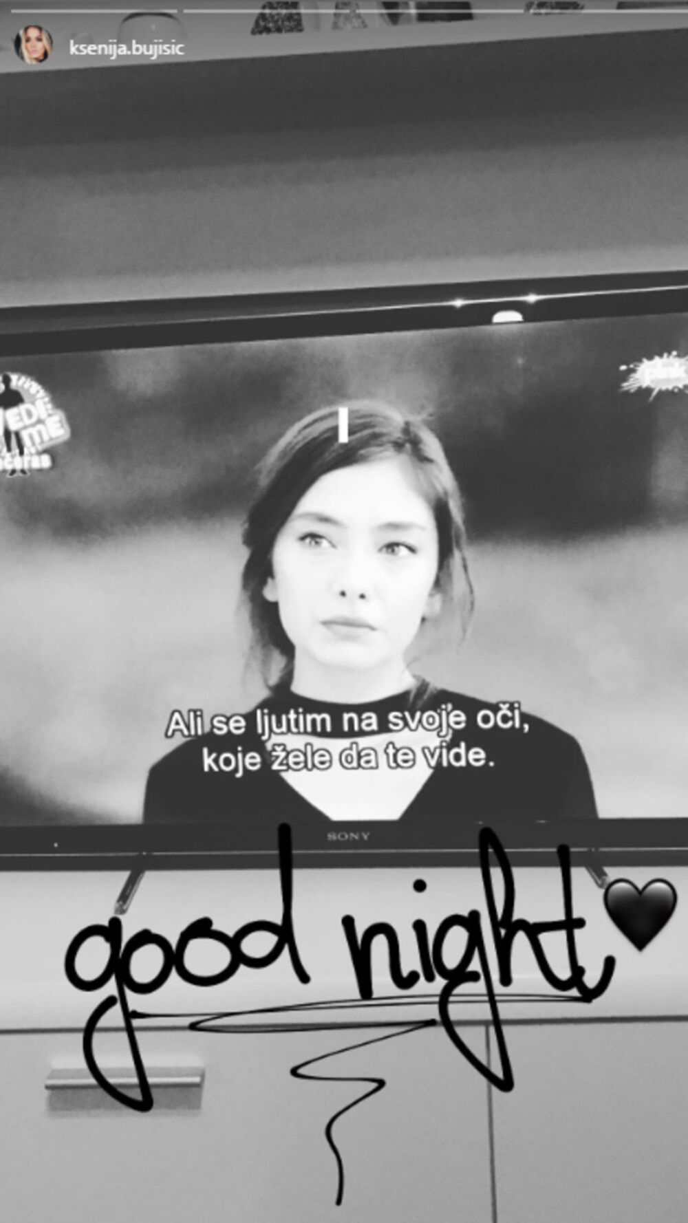 Ovog puta Ksenija je objavila fotografiju na kojoj je čuvena Nihan iz serije "Beskrajna ljubav" koja zaljubljeno poručuje svom Kemalu nešto što bi se moglo protumačiti kao poruka koju bi voditeljka mogla da ostavi samo Veljku.
