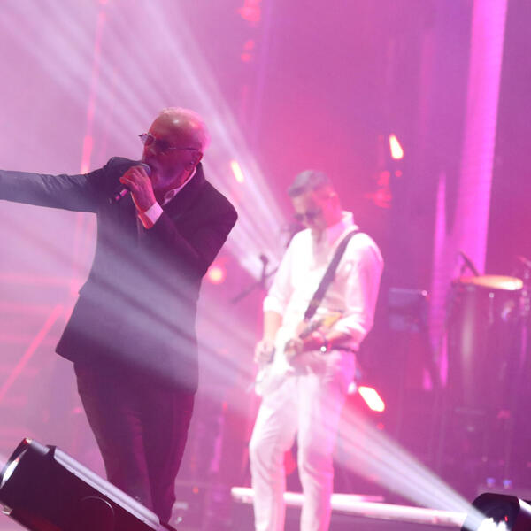 Pevač je vidno raspoložen po izlasku na scenu pozdravio publiku, a performans otpočeo hitom "Da šutiš".