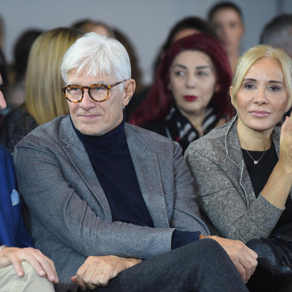 On je za ovu priliku izabrao crnu rolku i sivi sako, a možemo videti i da nosi naočare koje su odlične i kao modni detalj.