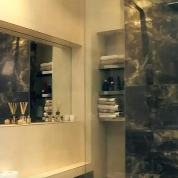 Iz pevačeve spavaće sobe ulazi se u ogromno kupatilo koje je odvojeno staklenim zidom tako da se iz kreveta sve jasno vidi. Pevač čak i u kupatilu ima umetničke fotografije, ali i posebne detalje za opuštanje.