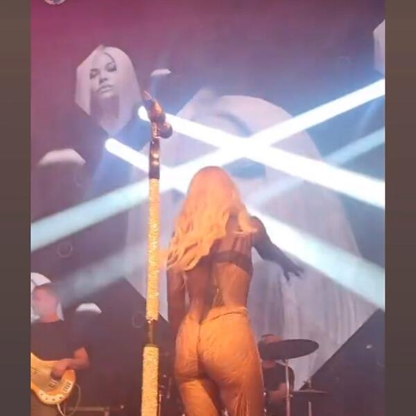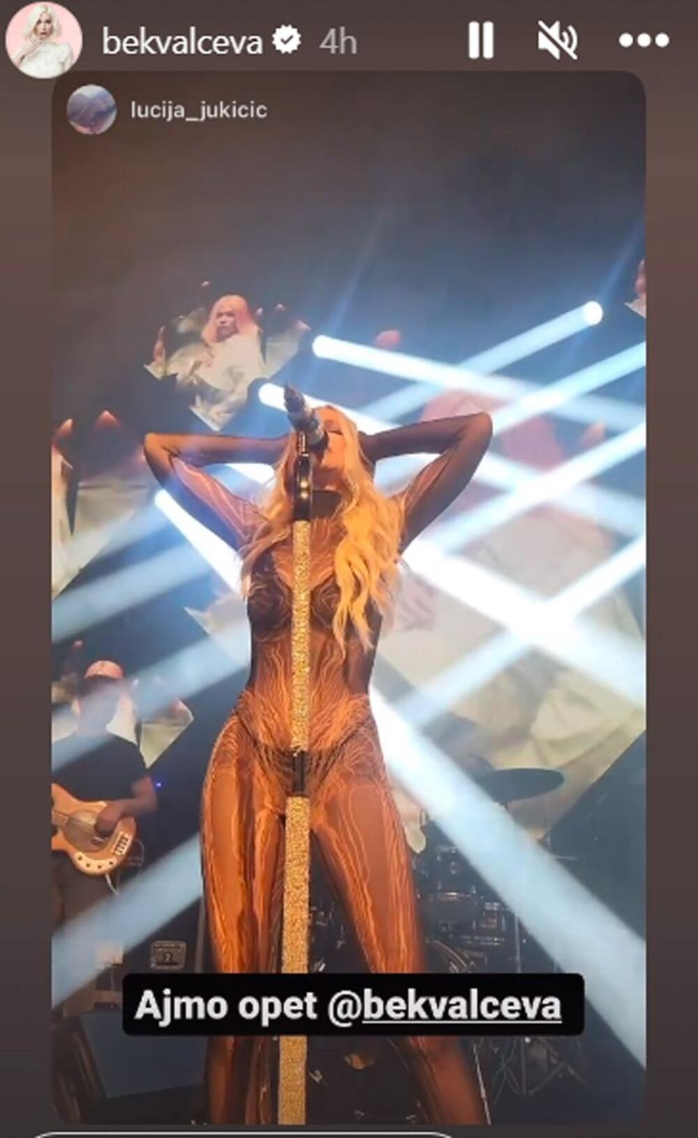 Bekvalčeva je ponela totalno providni kombinezon sa šarama koji je istakao njeno telo, a ispod je imala samo donji veš i to minijatune tanga-gaćice koje su se otpozadi jedva i videle.