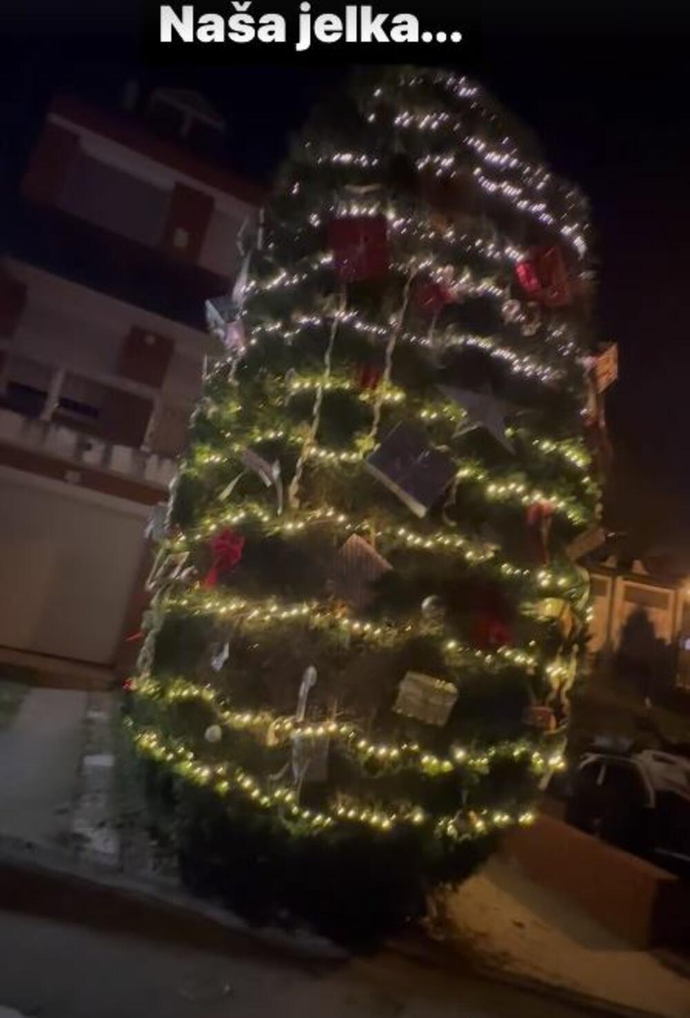 Velika jelka nasred ulice koje su okitile komšije obasjava gotovo celi kvart, a Jelena je ponosno pokazala kako izgleda.