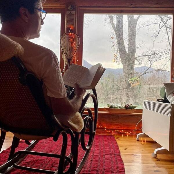 Najpre je objavio fotografiju iz stolice u kojoj se odmarao i čitao knjigu dok se ispred njega prostirao pogled na prirodu.