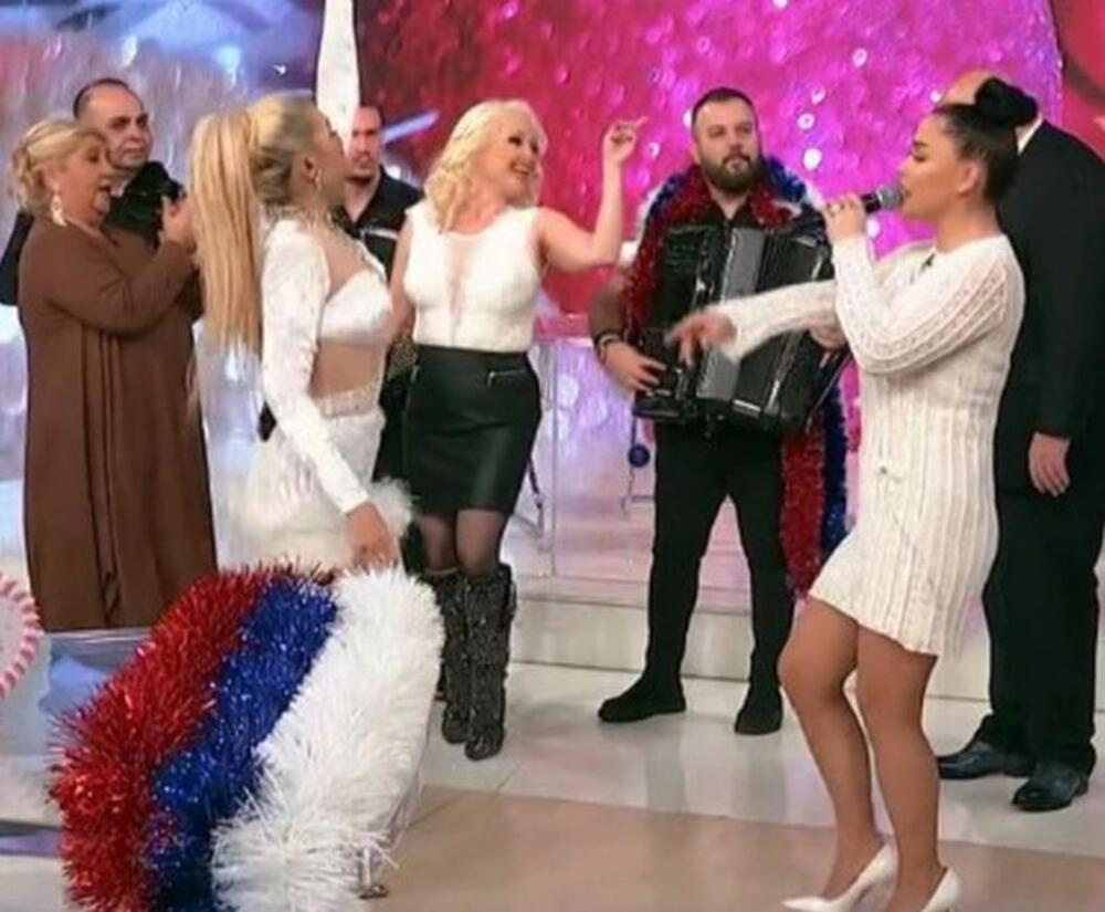 Jeremićka je sve vreme pevala i igrala, a u jednom trenutku sela je u krilo Deda Mrazu u studiju.