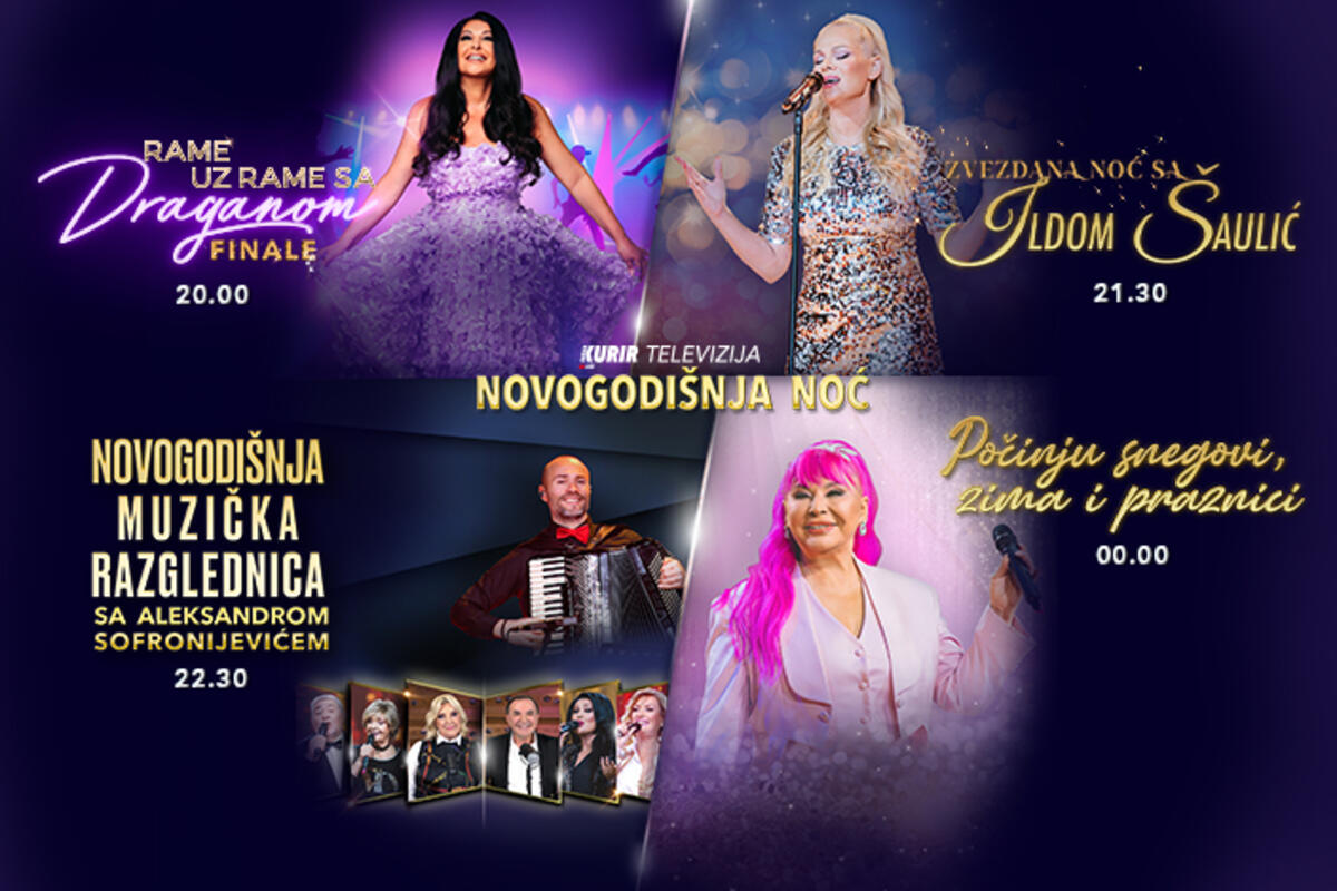 Za novogodišnju noć Kurir televizija pripremila je vrhunski program. Preko dana imaćete priliku da pogledate praznične specijale vaših omiljenih emisija, a Novu 2024. godinu dočekaćete uz finale spektakularnog plesnog takmičenja i pravi muzičku šou uz najveće muzičke zvezde.