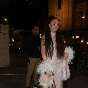Jovana Jeremić blistala je u ultra kratkoj ljubičastoj haljini, koja je cela bila od šljokica, dok je oko vrata, imala ogrlicu od pravih dijamanata, kako je naglasila.
