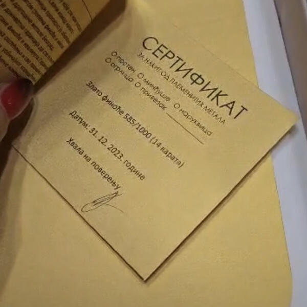 Espreso je saznao da je ogrlica od zlata finoće 585/1000 (14 karata) i poseduje svoj sertifikat.