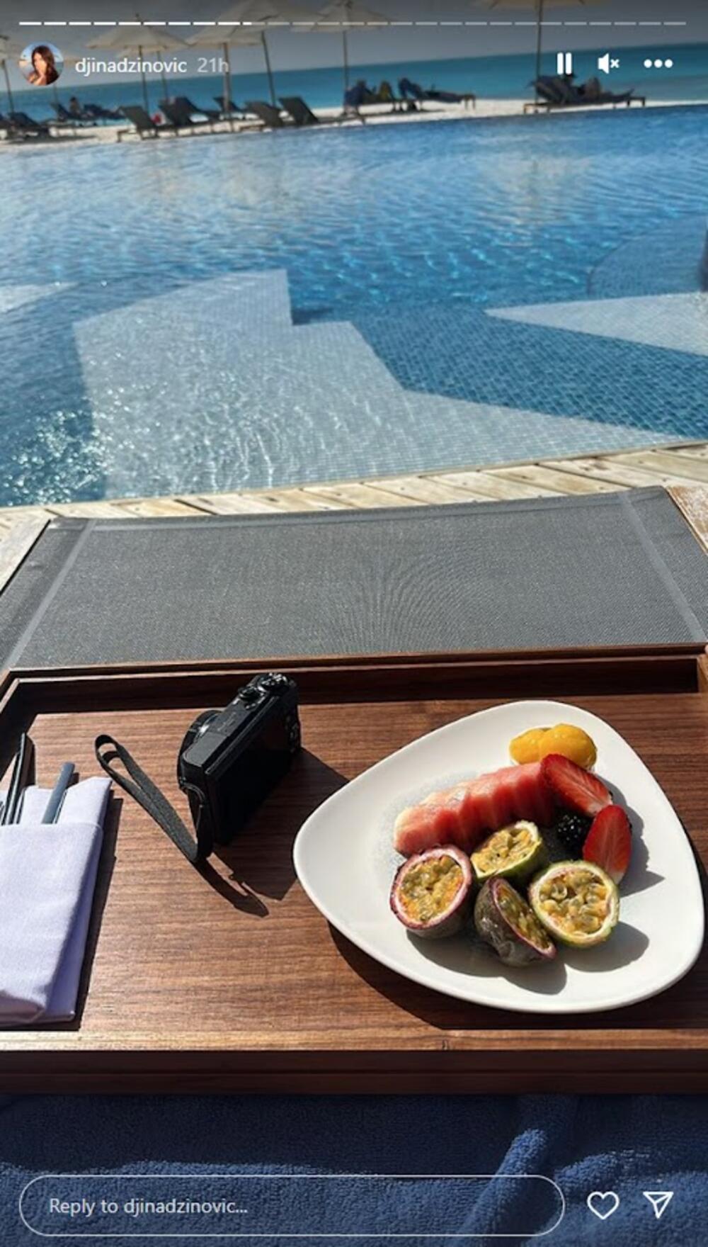 Đina Džinović na ovoj dalekoj destinaciji uživa u potpunom luksuzu, a svaki trenutak proveden na plaži zabeleži fotografijama koje deli sa svojim pratiocima na društvenim mrežama.