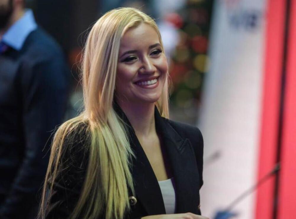 Za ovu priliku je obukla crno odelo i belu majicu, a duga plava kosa je svima zapala za oko.