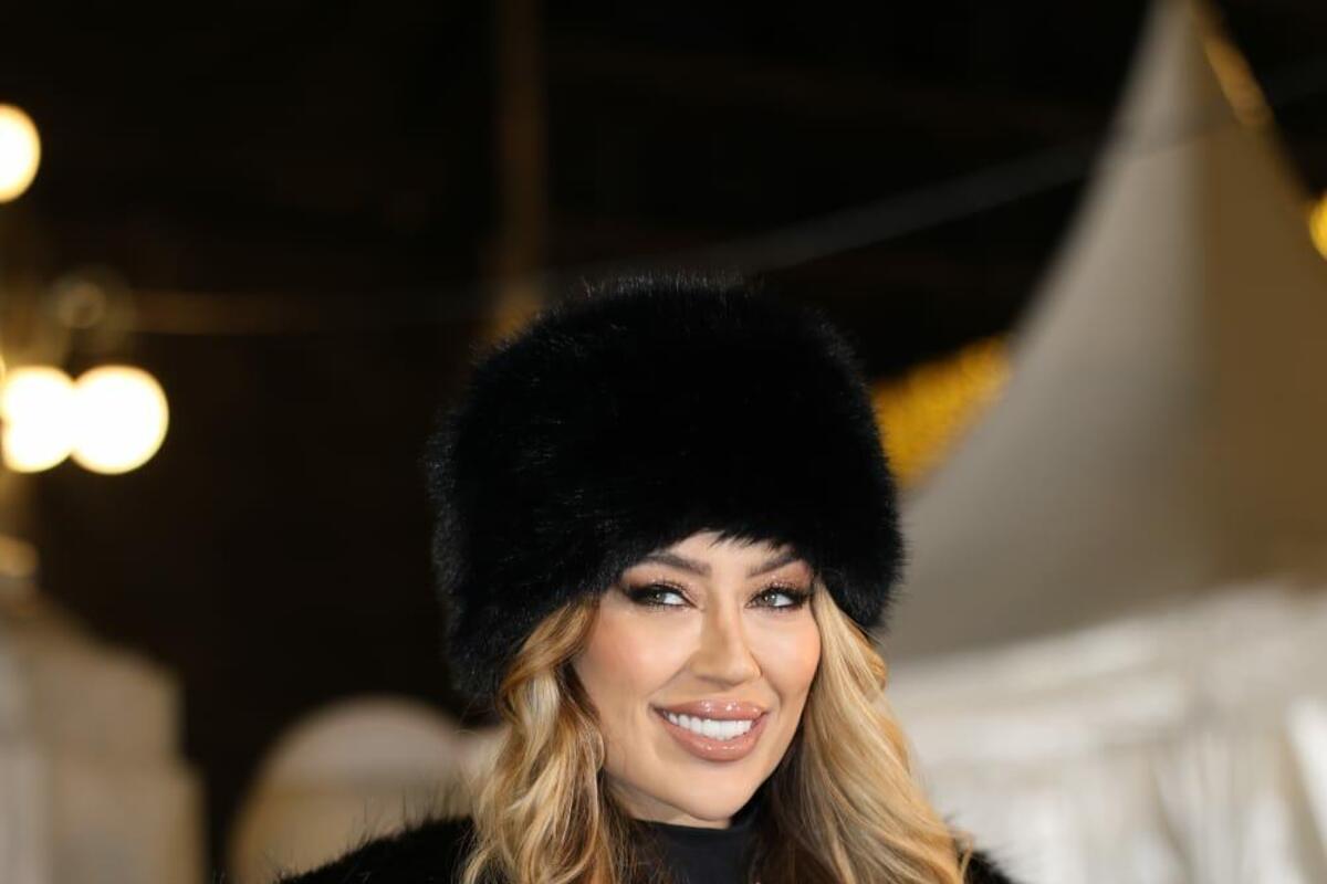 U dugačkoj crnoj bundi sa kristalima, crnom šubarom i šljokičastim kombinizonom Tea je oduševila sve prisutne, a posebno iznenađenje je to pevačicina bunda teška 10 kilograma.