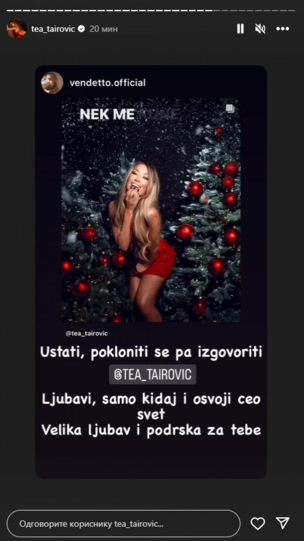 Tea se satima nije oglasila na društvenoj mreži Instagram, naročito nakon haosa i poruke Karleuše, a sada je podelila niz poruka podrške na svom Instagram i jasno stavila do znanja da je ratovi i prepucavanja ne zanimaju.