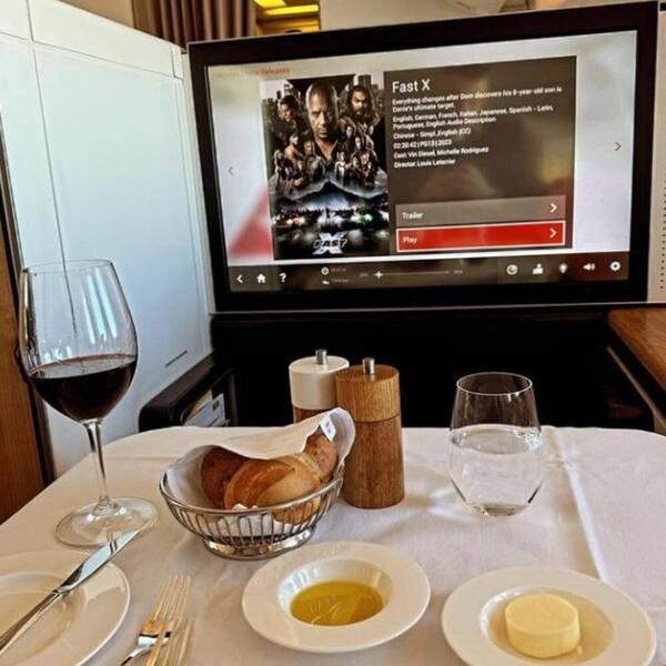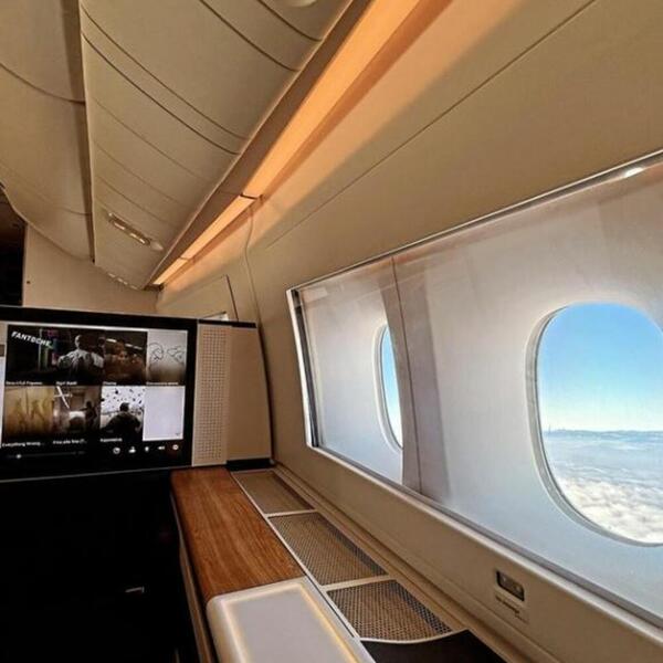 Brenin sin podelio je nekoliko fotografija iz privatnog aviona kako pije šampanjac i baškari se uz ručak i filmove.