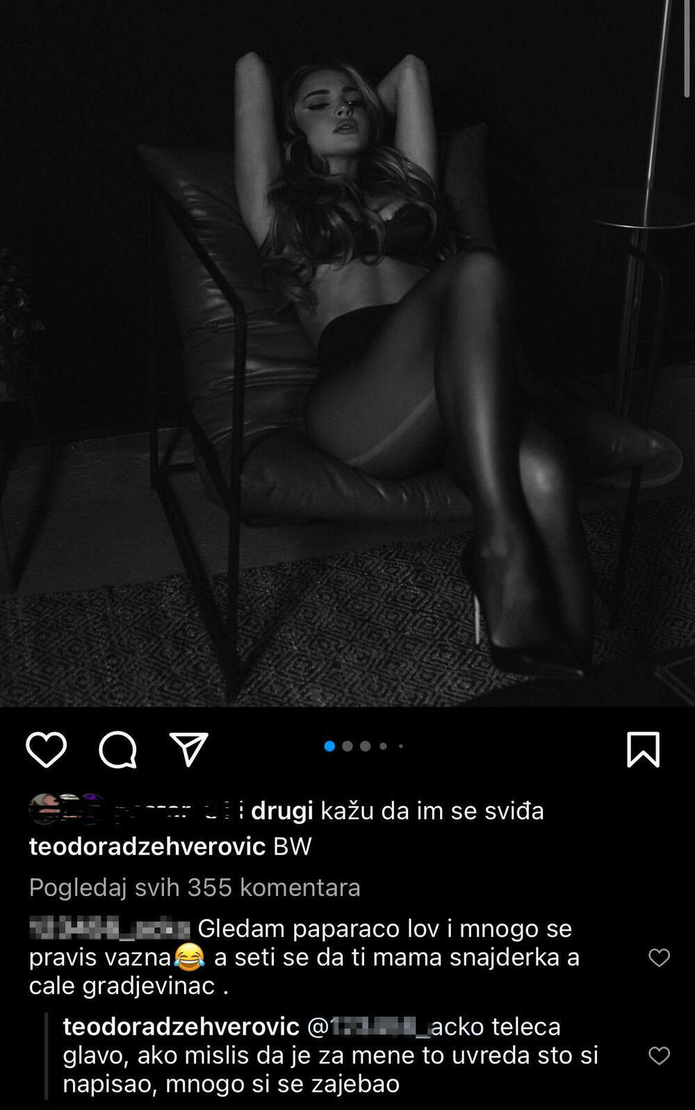 Teodora Džehverović odlučila je da više ne ćuti na brojne uvrede svojih pratilaca na Instagramu, pa je neke od njih nazvala i "telećom glavom".