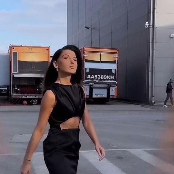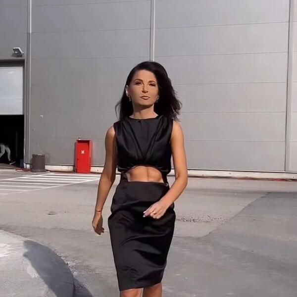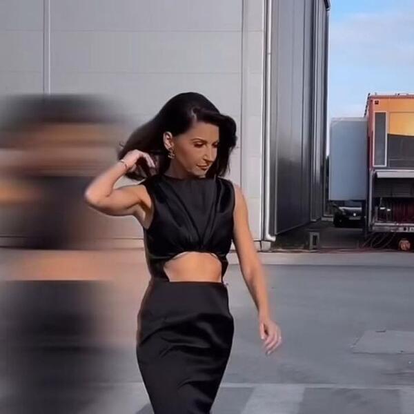 Sanja se snimila tokom radnog dana, u pauzi od snimanja. Prošetala je u uskoj, crnoj haljini sa prorezom na stomaku, koji je istakao njene trbušnjake, koji su kao izvajani.