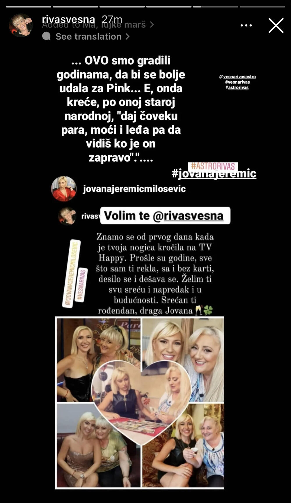 Vesna je sada objavila nekoliko storija sa materijalom iz prošlosti, a na njima se vidi koliko su Jovana i Vesna bile bliske nekada.