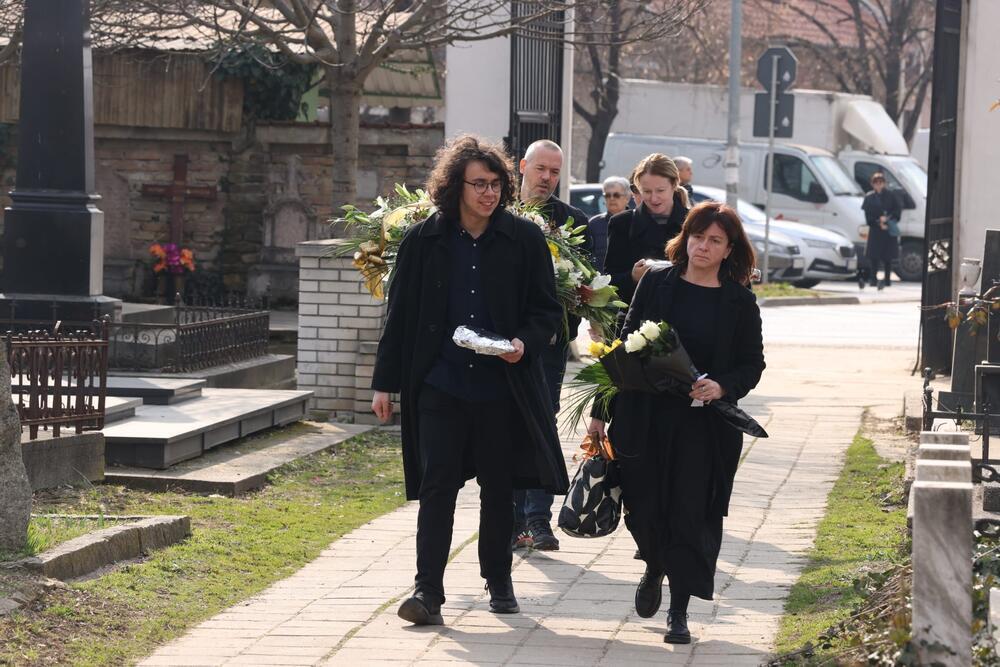 Gavrilo, sin Nebojše Glogovca, došao je na groblje sa svojom tetkom Bojanom, inače rođenom sestrom pokojnog glumca.