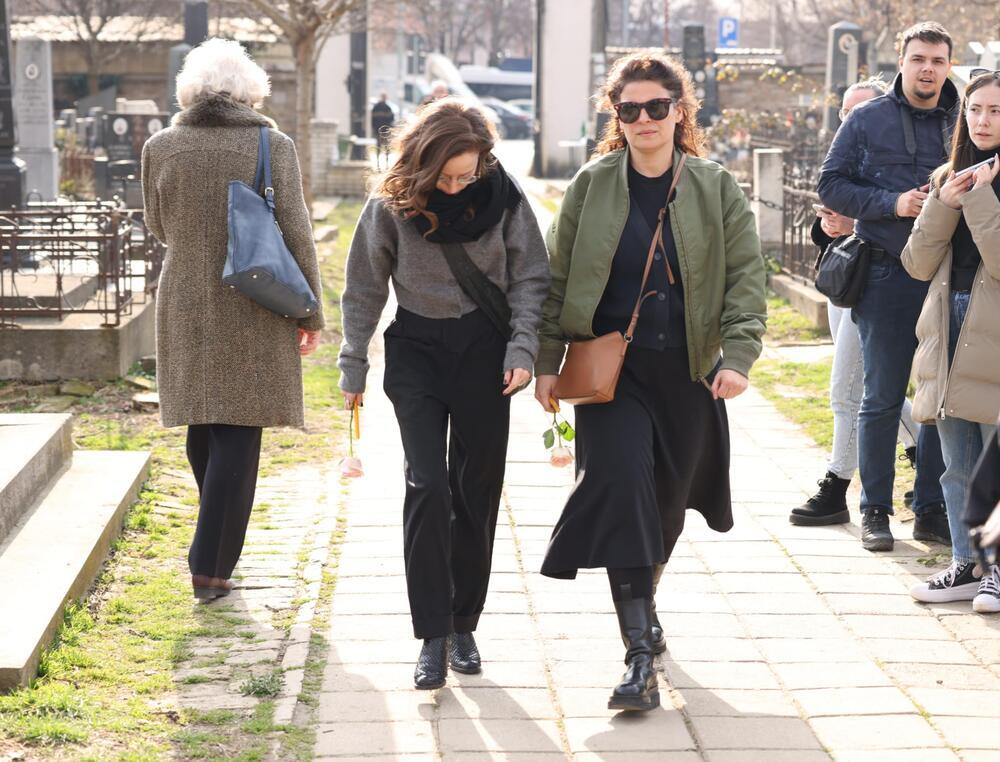 Na sahranu je došla i Mina, prva supruga pokojnog glumca Nebojše Glogovca, s kojom ima dva sina - Gavrila i Miloša, koji su takođe na dedinom poslednjem ispraćaju.