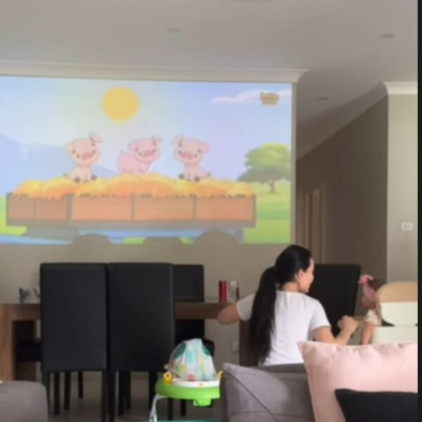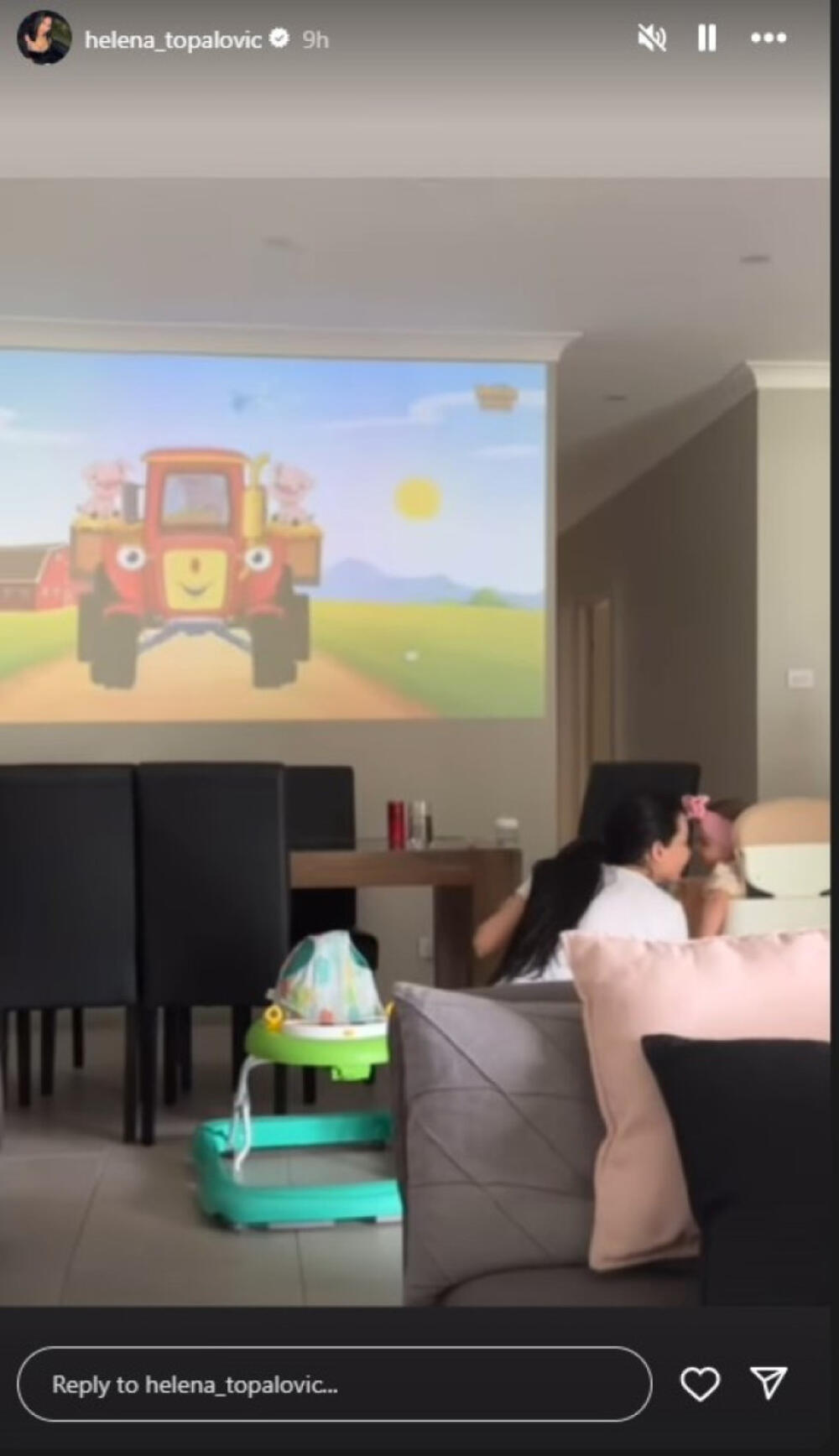 Veliku pažnju maloj Dominiki privukao je projektor, pa je tako na ogromnom zidu mogla da gleda svoj omiljeni crtani film.