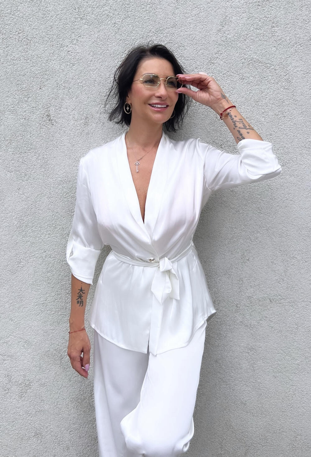 Ona je sada na svm Instagramu pokazala novu modnu kombinaciju koja je mnoge ostavila bez daha. Beli komplet joj odlčno stoji, a posebno naglašava struk.