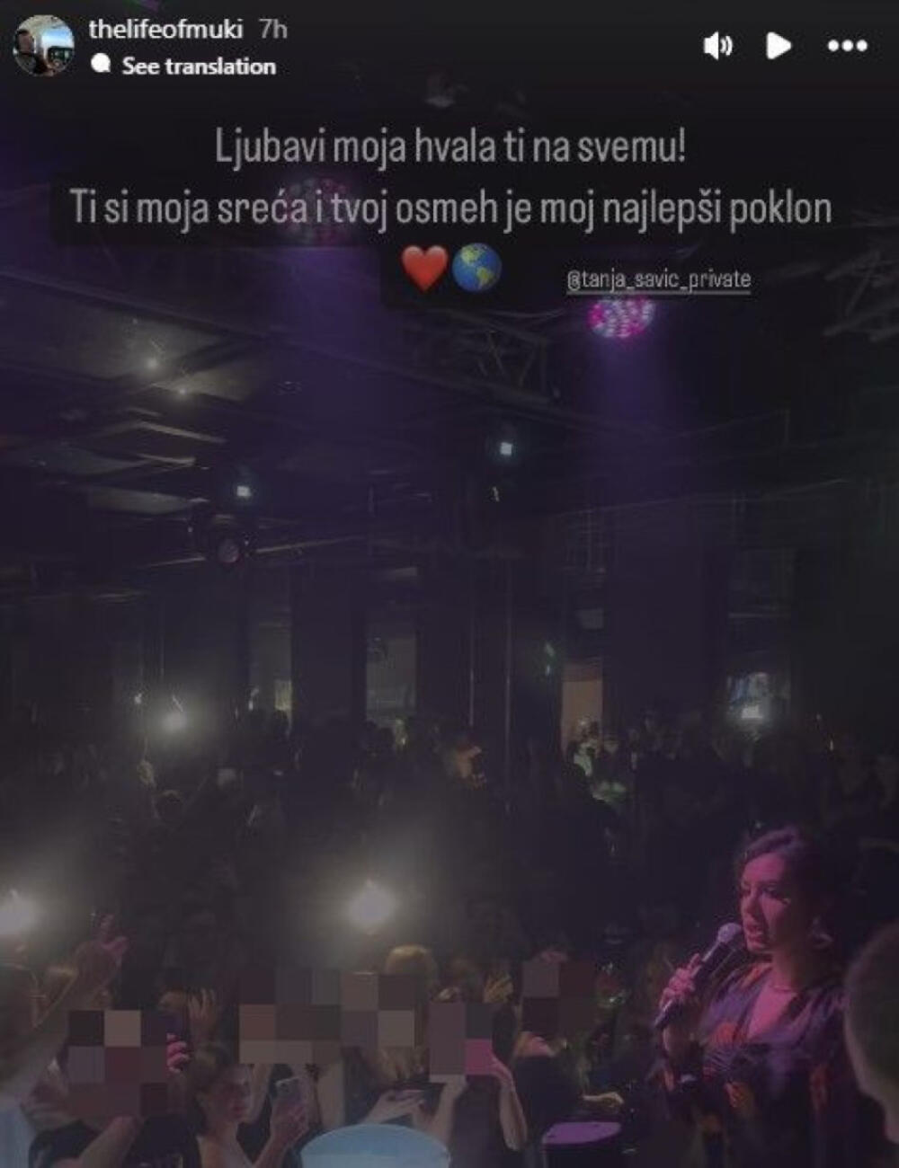 - Želim da čestitam jednoj mojoj dragoj osobi rođendan. Ne znam da li je ta moja draga osoba večeras tu... Moj momak večeras slavi rođendan, želim mu sve najlepše. Tu je on, ali mislim da je otišao u bekstejdž. Ljubavi moja, želim ti sve najlepše. Da te sreća prati - kazala je Tanja, a snimak njenog govora završio je na njegovom Instagramu.