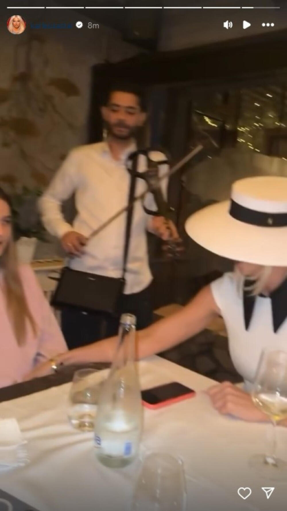 Pevačica je za tu priliku odabrala belu kombinaciju i veliki šešir u istoj boji, te nije bilo šanse da ostane neprimećena. Njene kolege muzičari, odmah su došli za sto za kojim je pevačica sedela sa porodicom i podigli atmosferu.