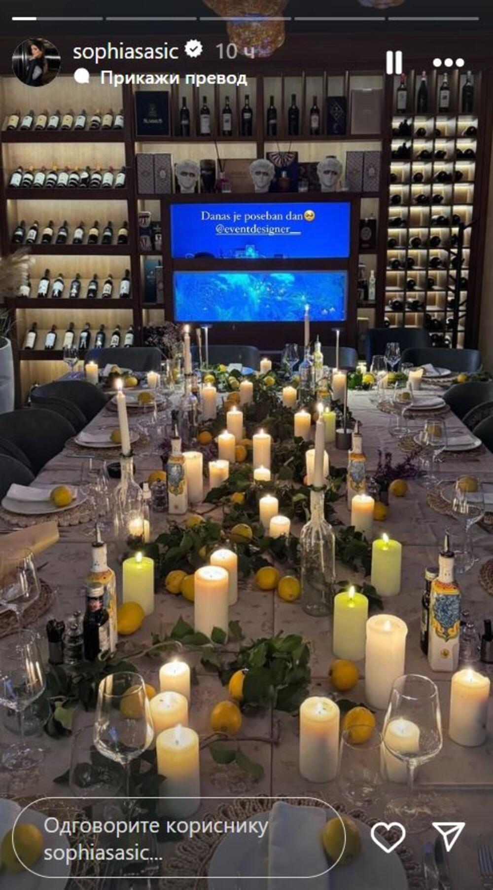Sonja je proslavu napravila u jednom prestoničkom restoranu, a dekoracija je sve prisutne ostavila bez daha. Po stolu su svuda bile bele sveće i limuni.