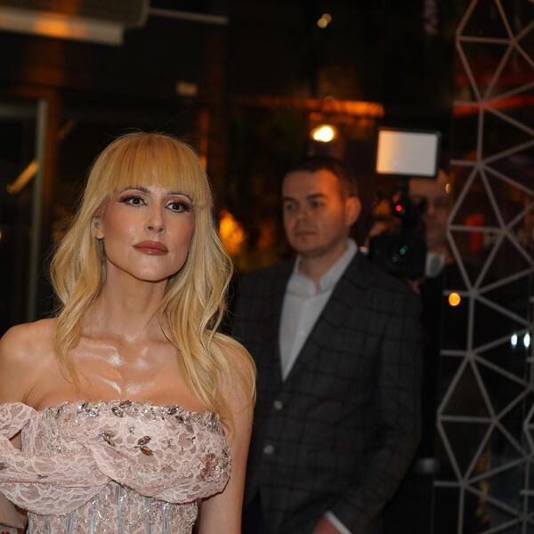 Izgledala je kao da je stigla direktno iz Holivuda u dugoj i elegantnoj kreaciji, a osmeh nije skidala sa lica.