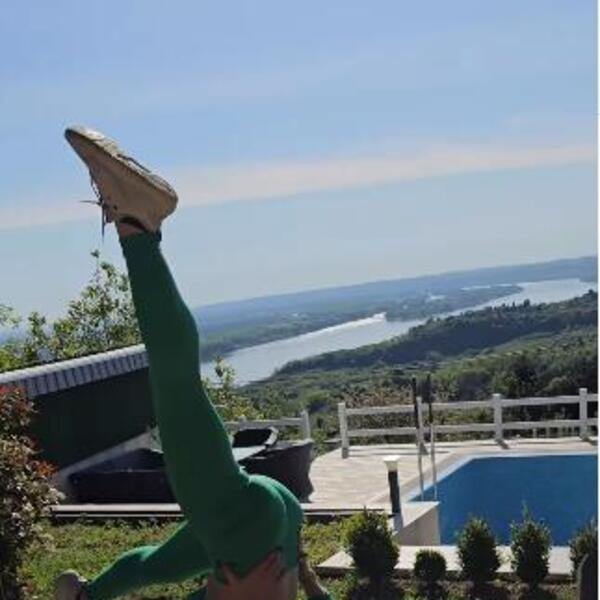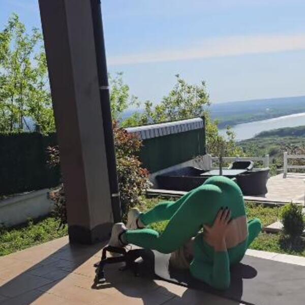 Jovana je vežbala na strunjači u uskim helankama i topu, a na ovaj način je svojim pratiocima poželela dobro jutro.