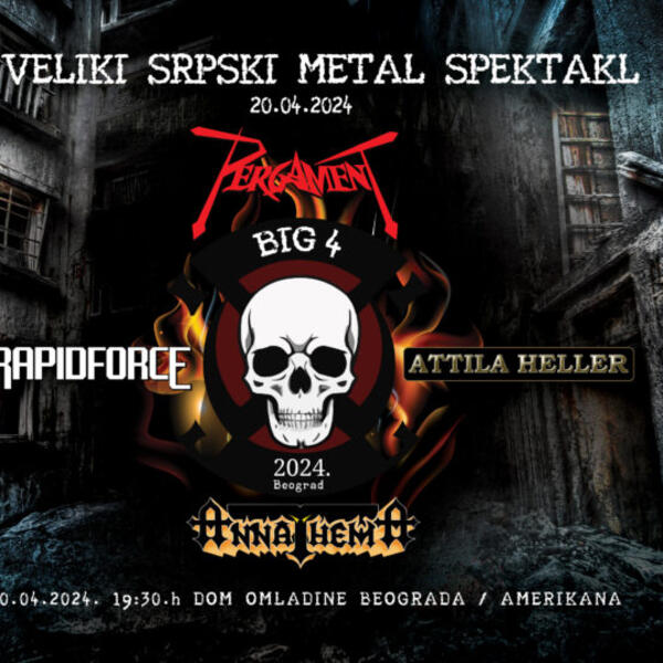 Pod sloganom Big 4, naši najpoznatiji heavy metal bendovi održaće spektakularne koncerte u Amerikani Doma Omladine u Beogradu, dana 20.aprila s početkom u 19:30h.