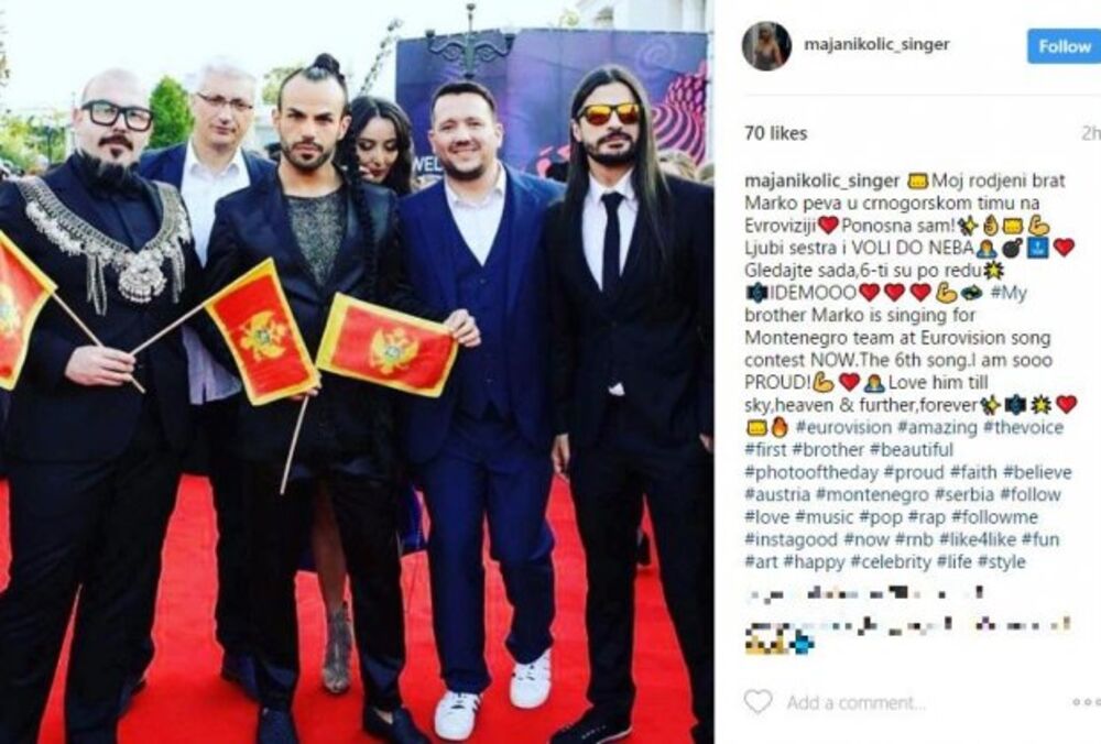 "Moj rođeni brat Marko peva u crnogorskom timu na Evroviziji. Ponosna sam! Ljubi sestra i vili te do neba! Gledajte sada, 6-ti su po redu. Idemo", piše u okviru objave.