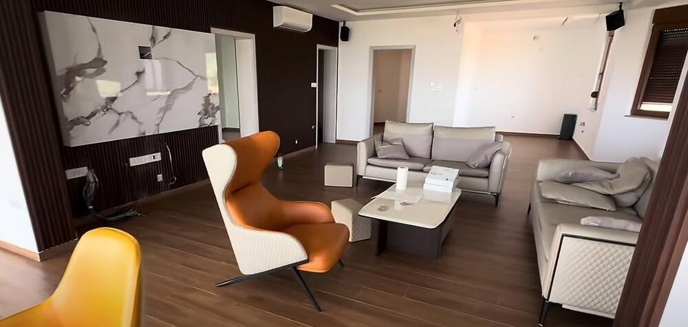 Ogromni dvorište kao iz filma, zelenilo, kamene visoke ograde, palme i fontana ,ogroman prostor za dečije igračke, vila sa ogromnim prozorima odakle puca pogled na zelenilo i prirodu, čak dve dnevne sobe, ogromne garniture, kupatilo sa dva umivaonika, a spavaća soba duž celog zida ima veliko ogledalo i pogled na planine.