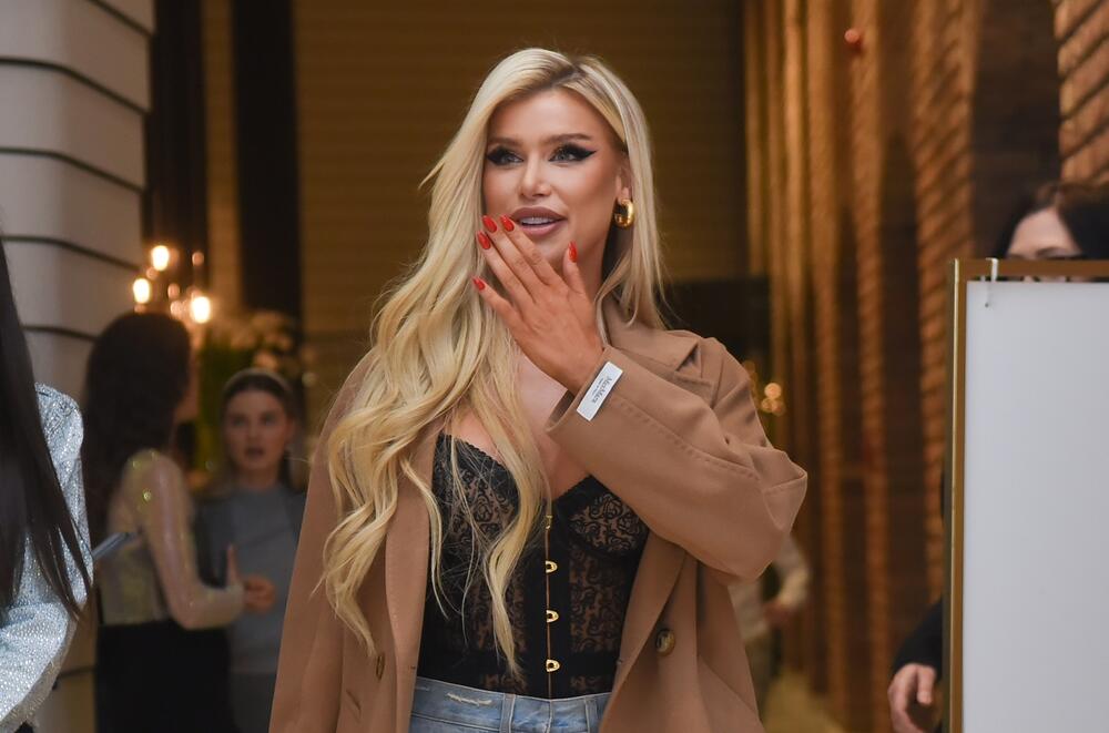 Ona je za ovu priliku obukla farmerke, čipkasti korset, ali i dugački mantil. Tu je i skupocena torba, a svi su brujali o tome da nikad lepše nije izgledala.