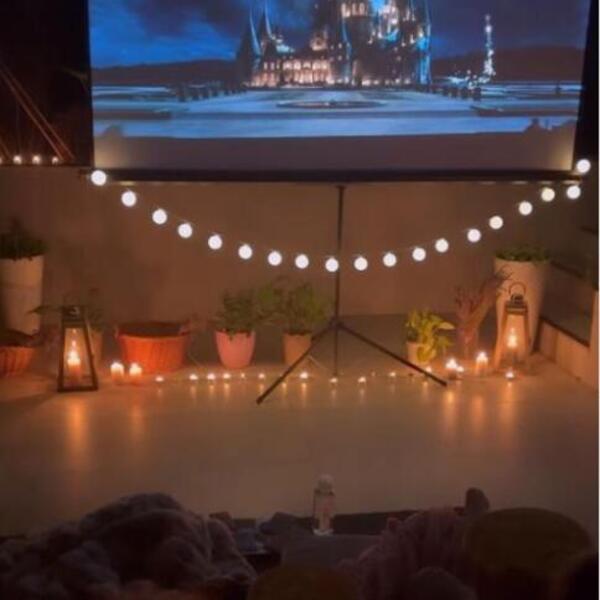 Bojana je jednom prilikom pokazala kako su Nikola i ona montirali kućni bioskop na otvorenom, pa su deca uživala u gledanju Diznijevog filma uz kokice, na komfornom... Prava bajka za sve!