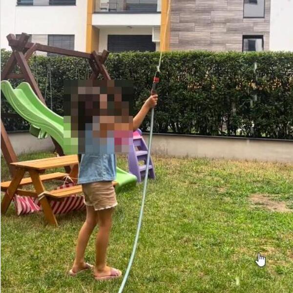 Njihovo dvorište prilično je prostrano, puno raznobojnog cveća i zelenila, a tu je i udobna garnitura, pletena ležaljka, kućica za igru, kao i zeleni "zidovi" koji čuvaju njihovu privatnost.