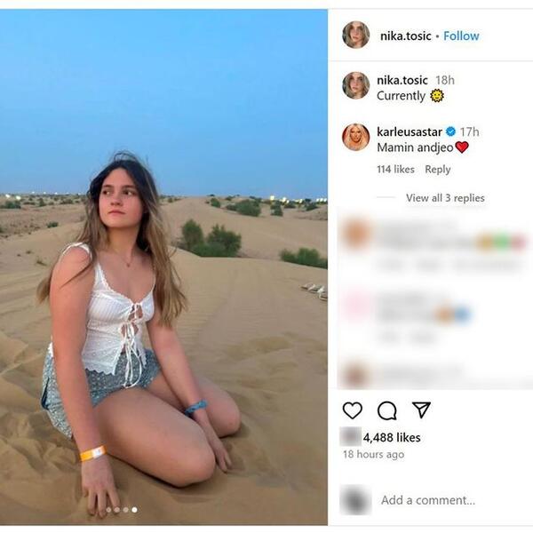 Popd diva Jelena Karleuša prokomentarisala se ćerkinu fotografiju na Instagramu.
