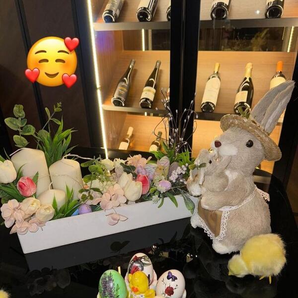 Okolo su svuda zečići i pilići, kao i mirišljave sveće, a za oko zapada i detalj "za odrasle". U pitanju je bar pun boca skupih vina.