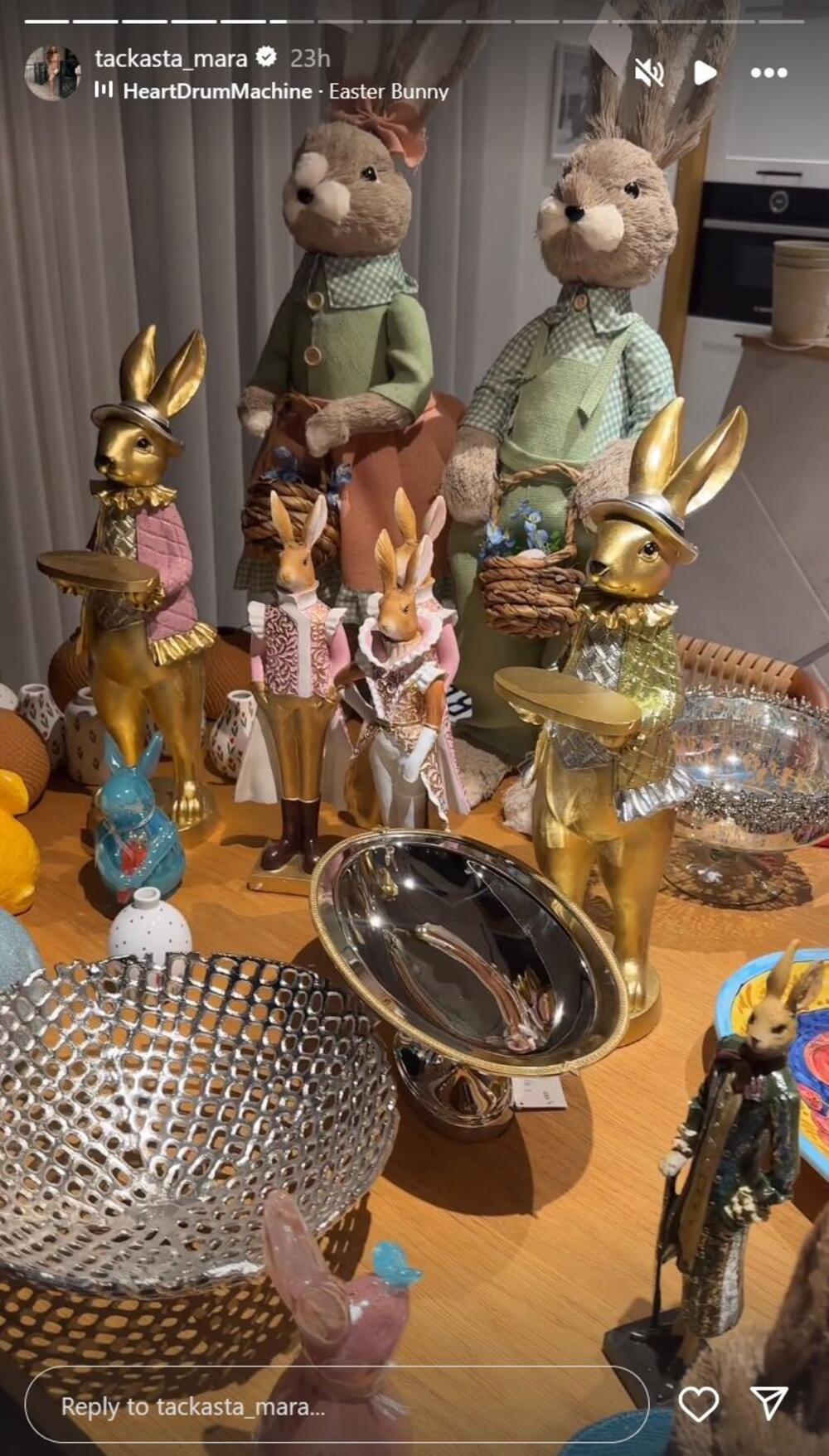 U dvorištu su ogromni zečići i jaja, sa kojima se deca igraju, a Branko je uslikao i pune korpe ofarbanih jaja kao i postavljeni sto u najlepšim pastelin bojama.