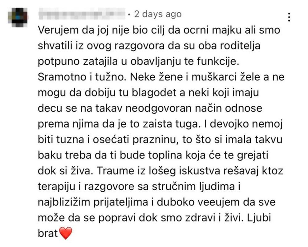 Ljudi su, kako se jasno da zaključiti na osnovu komentara ispod snimka Jelenine ispovesti, razočarani u Gocu i sve što su čuli od njenog prvog deteta.