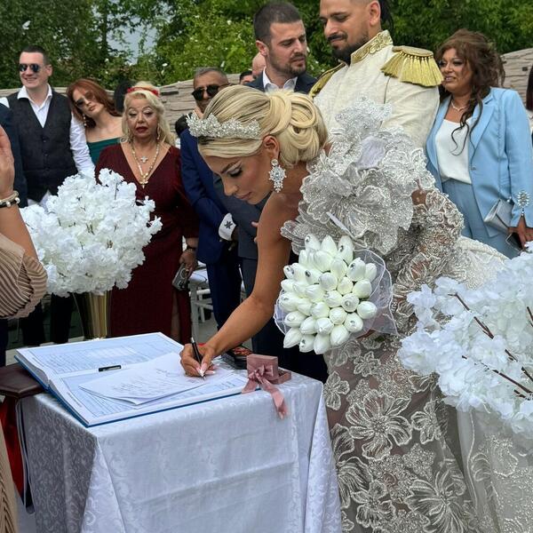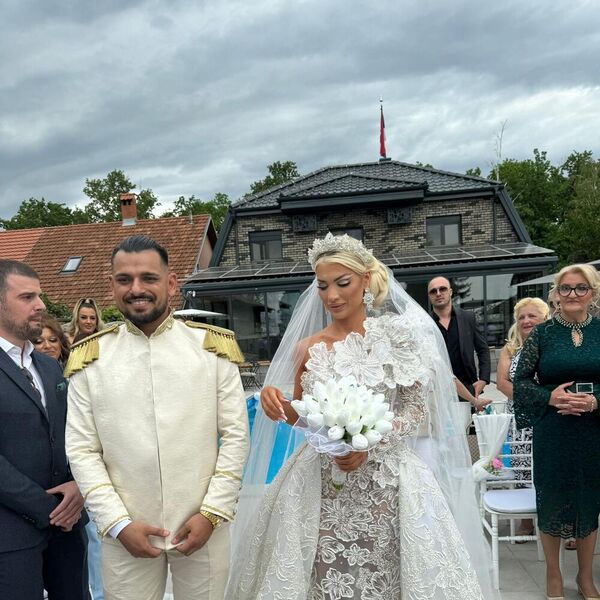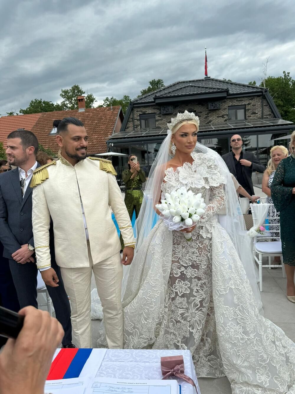 Milica je zablistala u raskošnoj venčanici i izgledala je kao prava princeza, a na glavi je nosila belu krunu od cirkona i bisera.