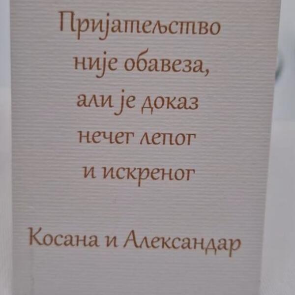 - Prijateljstvo nije obaveza, ali je dokaz nečeg lepog i iskrenog, Kosona i Aleksandar - glasila je poruka koju su mladenci poručili gostima.