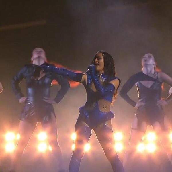 21.17 - Teya Dora, koja predstavlja Srbiju nastupa druga po redu s pesmom "Ramonda". Teya Dora je na sceni bosa, a deo njene scenografije je ogromna stena.
