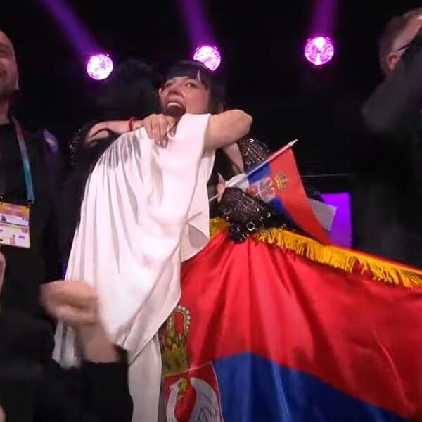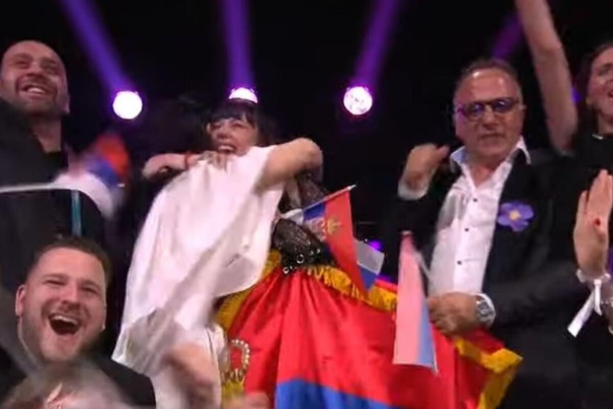 Teodora je od uzbuđenja vrištala i mahala srpskom zastavom, a potom je zagrlila koleginicu i prijateljicu Anu Đurić Konstraktu, koja nas je 2022. godine takođe predstavljala na Evroviziji.