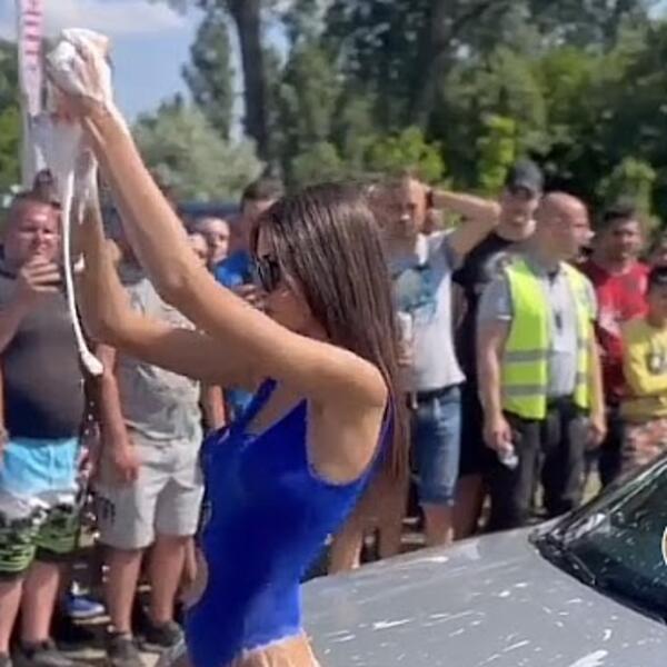 Naime, Sandra u golišavom izdanju pere automobil, ali i sebe na jednom skupu, dok je okupljeni muškarci snimaju.